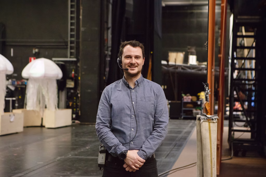 Oopperaan ja Balettiin hain, koska talon näyttämö on Suomen suurin ja kovimmassa käytössä. Lisäksi tässä talossa käytetään työkielenä englantia. Aloitin näyttämömiehenä vuonna 2014. Siirryin valaistusassistentiksi vuonna 2016 ja vuoden 2019 elokuusta lähtien olen toiminut valaistusmestarina kollegan sijaisena. Viihdyn talossa hyvin.